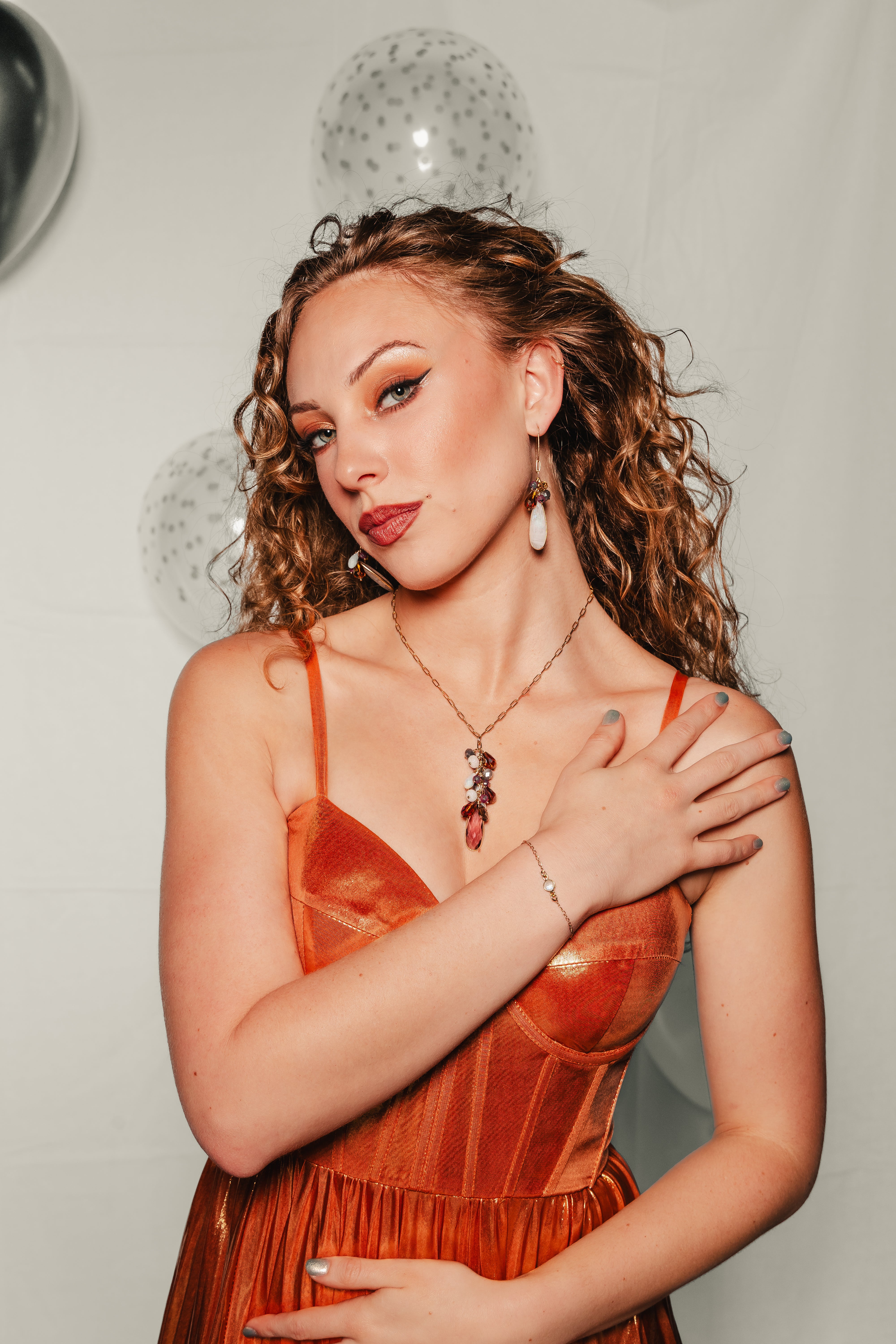 Created for a Northlake City Lifestyle magazine photo shoot, the Harlow Necklace was designed with drama, elegance, and artistry in mind. When presented with the gown for the shoot, I envisioned cascading gemstones that would echo its rich, flowing fabric and luminous jewel tones.